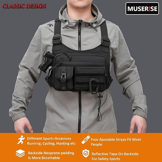 Outdoor Chest Bag For Men and Women, Tactical Vest For Running, Cycling, EDC Chest Pack Rig For Sports and Workouts