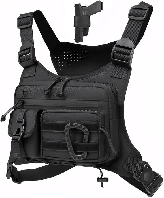 • Multiple Compartments & Holster Gift: Our chest bag rig features several compartments for your essentials. Store everything from your wallet and keys to your mobile phone and EDC gears, all within easy reach. We also provide a holster as the gift which could secure your pistol inside of the bag.