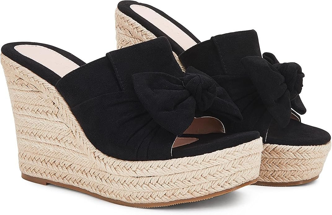 PiePieBuy Womens Platform Espadrilles Slip On Wedge Sandals Bow Tie Open Toe Slides Shoes
