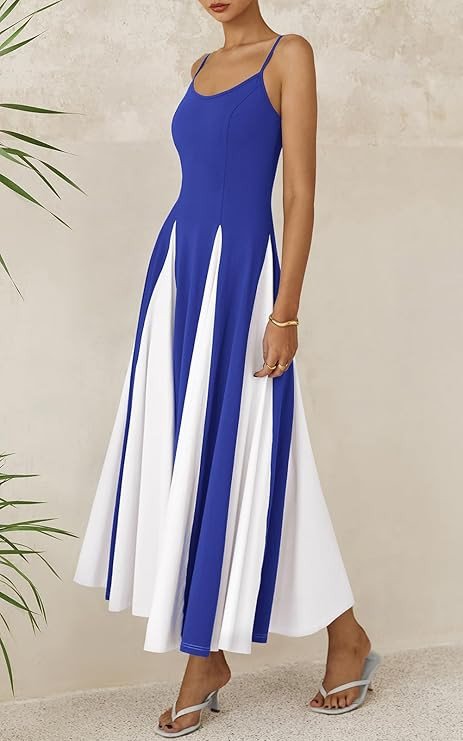 • Stretch Fabric: 94.6%Cotton, Soft and stretch fabric makes this spaghetti strap maxi dress for women fit any body shapes. This color block a line maxi dress is made of premium material to give you the maximum comfort. The fit and flare maxi dresses for women should be the new trendy spring/summer dresses for women 2025, this patchwork pretty garden dresses women make a nice addition to your wardrobe