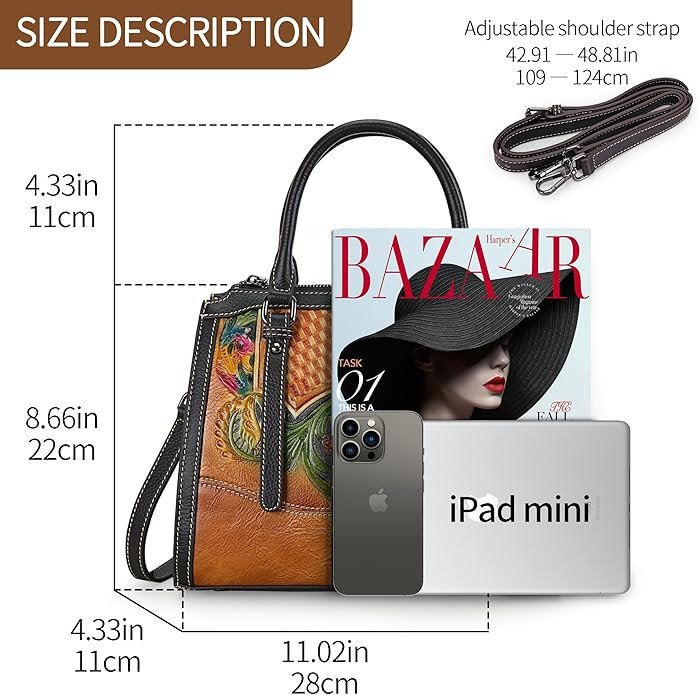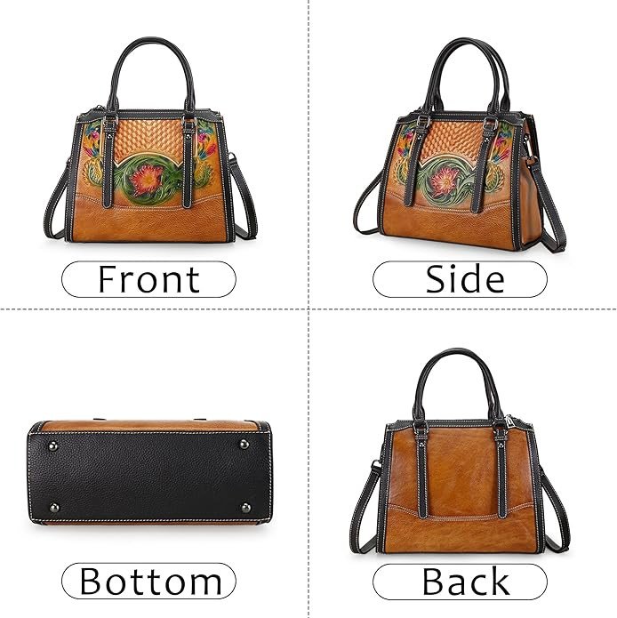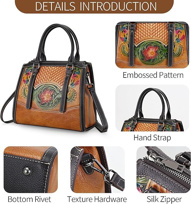 • METRIAL: High quality leather. This is a vintage design handbag and shoulder bag with colorful embossing floral pattern.