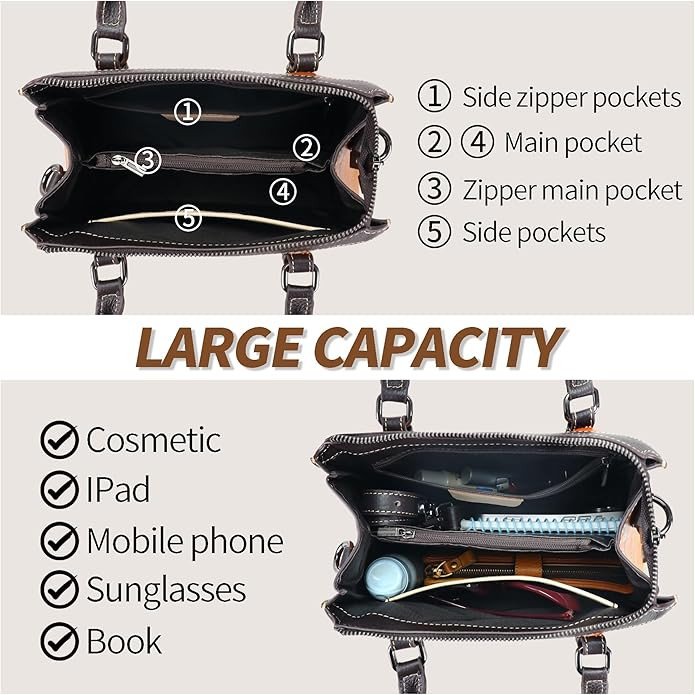 • LARGE CAPACITY: There are two main pocket, two zipper pocket, one ID cards bags. It is the perfect size as a daily bag and qite roomy to make all your stuff can be well organized inside.