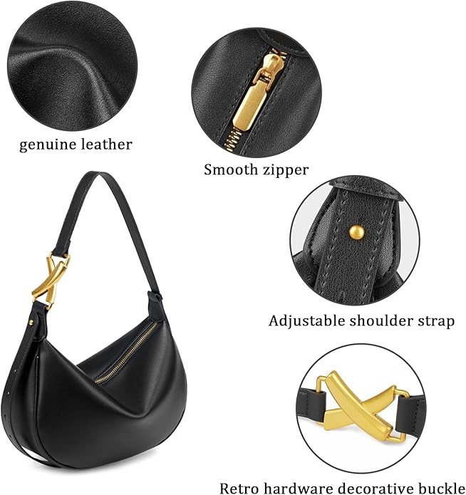 Shoulder Bags for Women, Genuine Leather Crossbody bags purses, Crescent Handbags with an Adjustable Strap