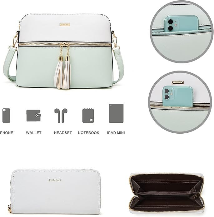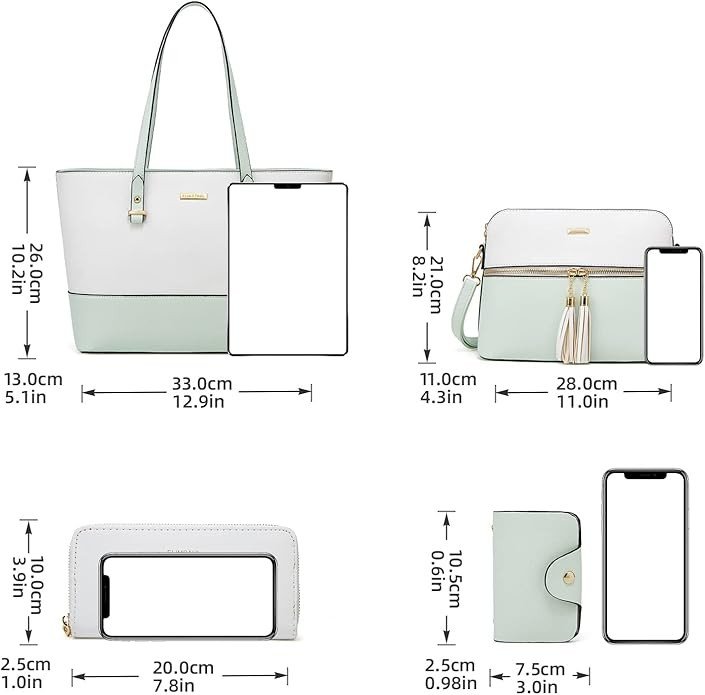 • Tote bag Pockets:One main zipper compartment with one inner zipper pocket,one back pocket and two slot pockets. 4pcs: One large handbag+one messenger Bag:+wallet clutch+card holder. Perfect for dating,shopping,working,traveling, vocation, party and other occasions and keep your daily items well organized.