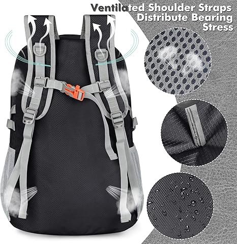 • Large Capacity Lightweight Packable Backpacks 30l: Our light camping backpack capacity is 30L,large capacity,many pockets.There is a main bag with a backpack,inner partition;There are two front bags,two side bags,and one privacy pocket.Whether it is clothing or a travel certificate,you can put it in a backpack.The 30L packable daypack meets the needs of going out